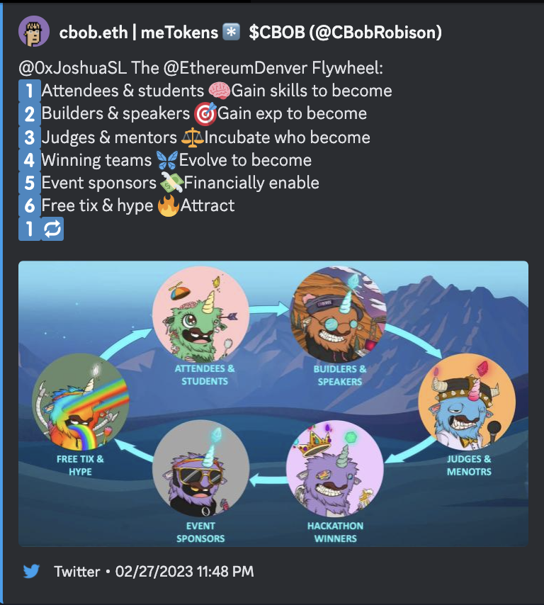 That flywheel works in a few steps. Attendees receive free tickets to the event; and then gain the skills to become builders.  Builders get real hands on experience in order to become hackathon judges, participants and mentors.  Hackathon winners go on to build rad successful companies which sponsor the event.  Those sponsorships keep tickets free; enabling a circular ecology of success.